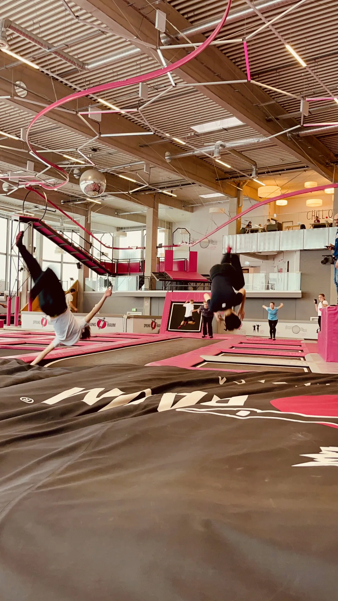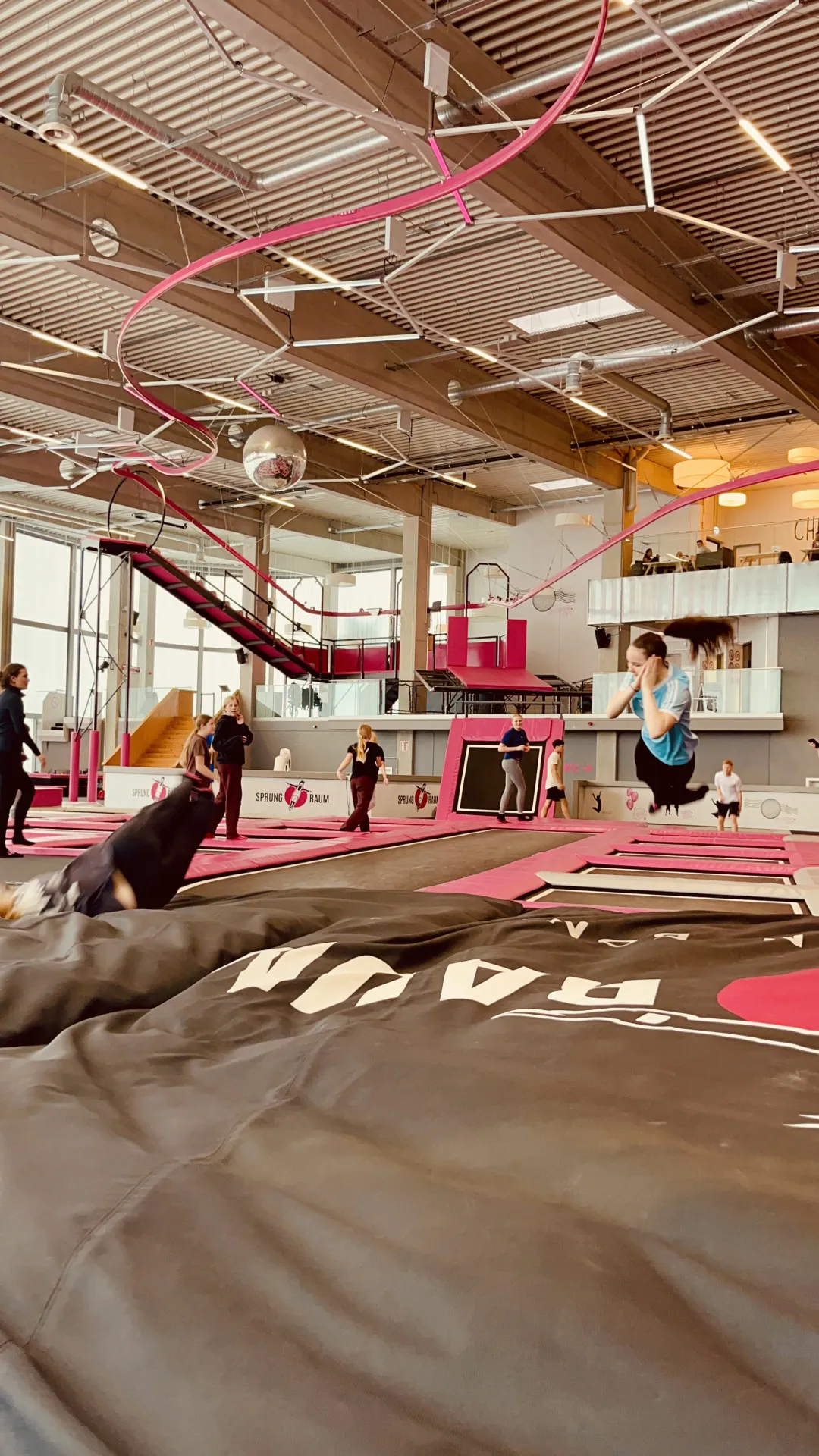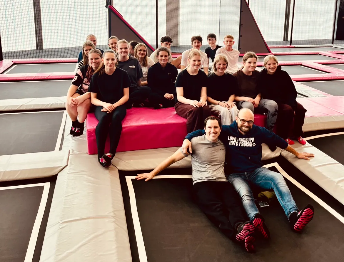 Schon die Anreise mit Bus und Bahn war für manche Schüler:innen der „Aufwärmteil“ des Tages. Spätestens im Trampolinpark war allen klar: Hier bleibt heute niemand am Boden. Auf den verschiedenen Flächen wurde gehüpft, ausprobiert, gelacht, zwischendurch kurz durchgeschnauft – und dann direkt der nächste Sprung probiert. Viele Schüler:innen testeten neue Sprungkombinationen, andere feierten einfach die perfekte Bauchlandung in die Schaumstoffgrube.